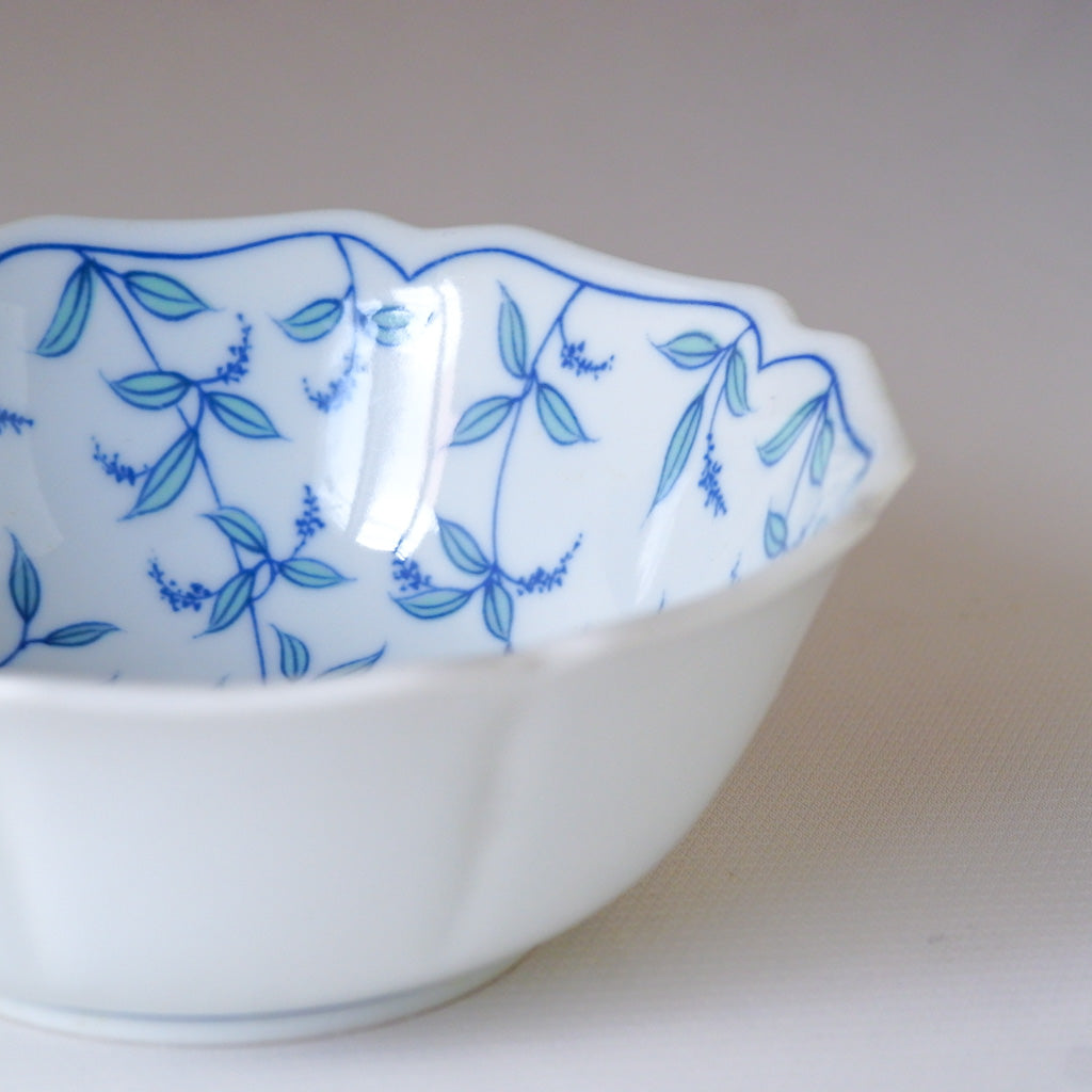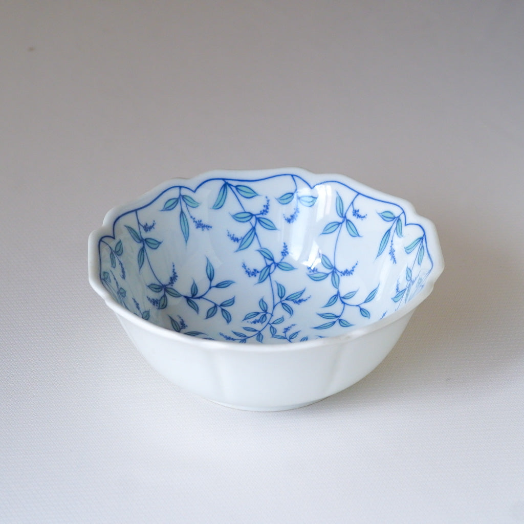 白磁のやわらかな曲線に、青の小花がそっと描かれた――
