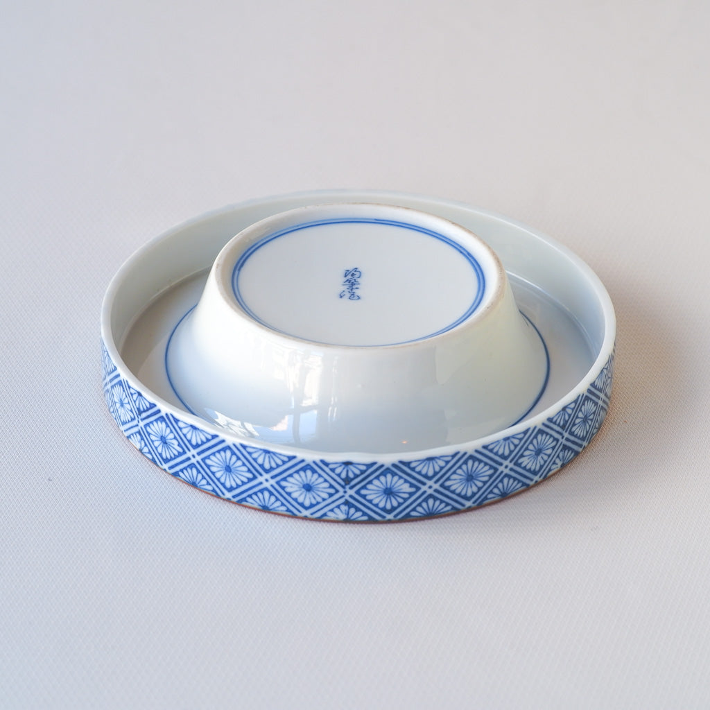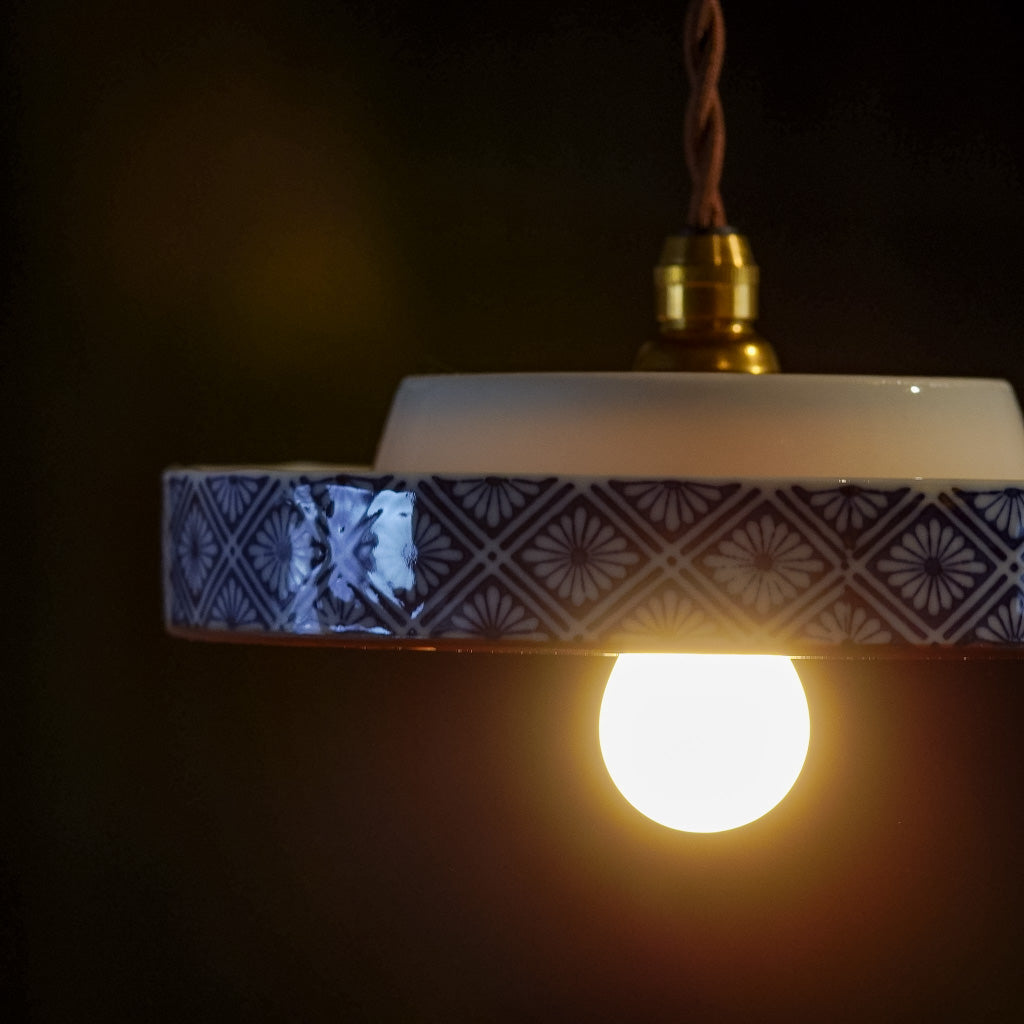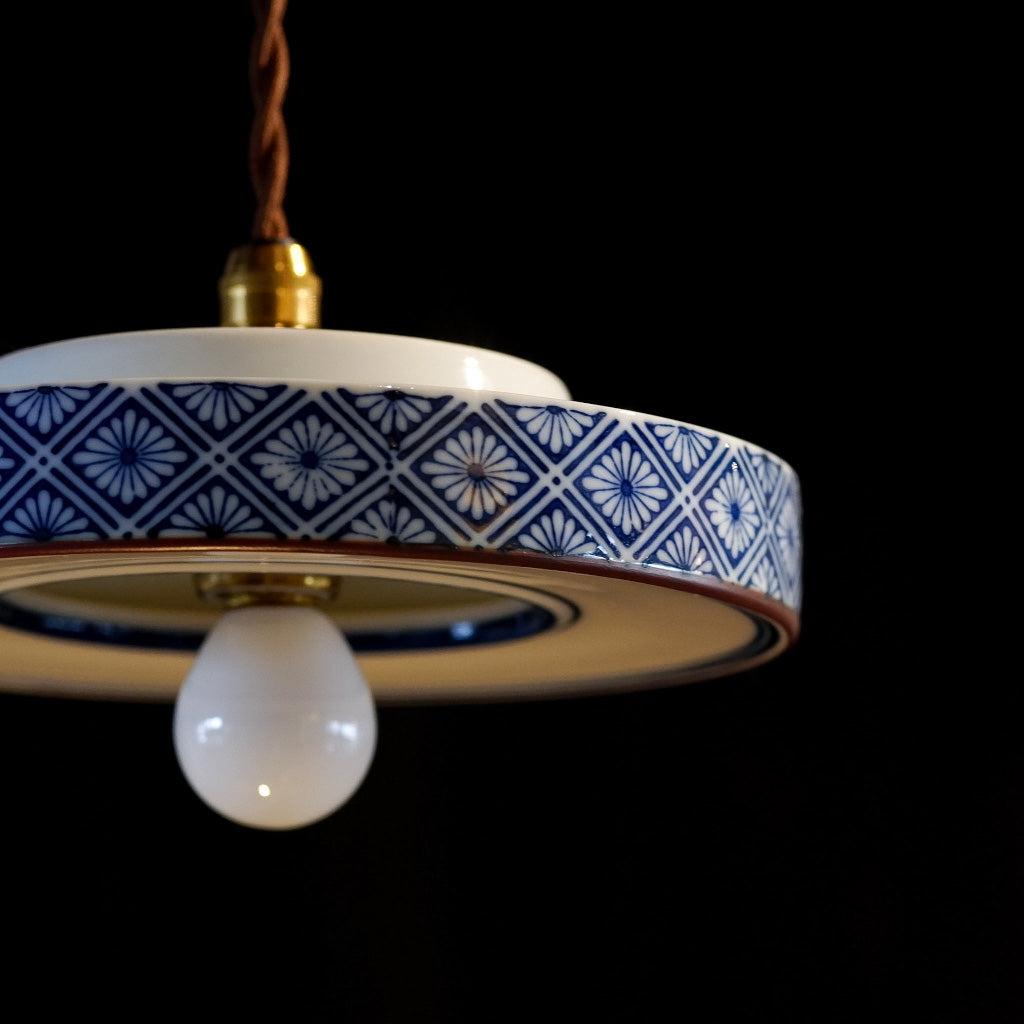 染付の中に立体的に描かれた花々が、光と共に美しく浮かび上がります。和心を感じる、清らかで上品な一灯です。