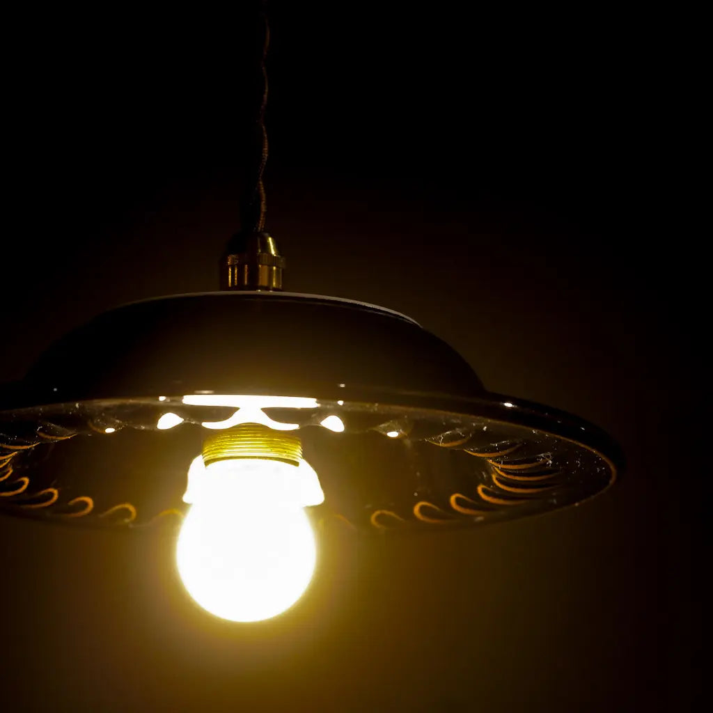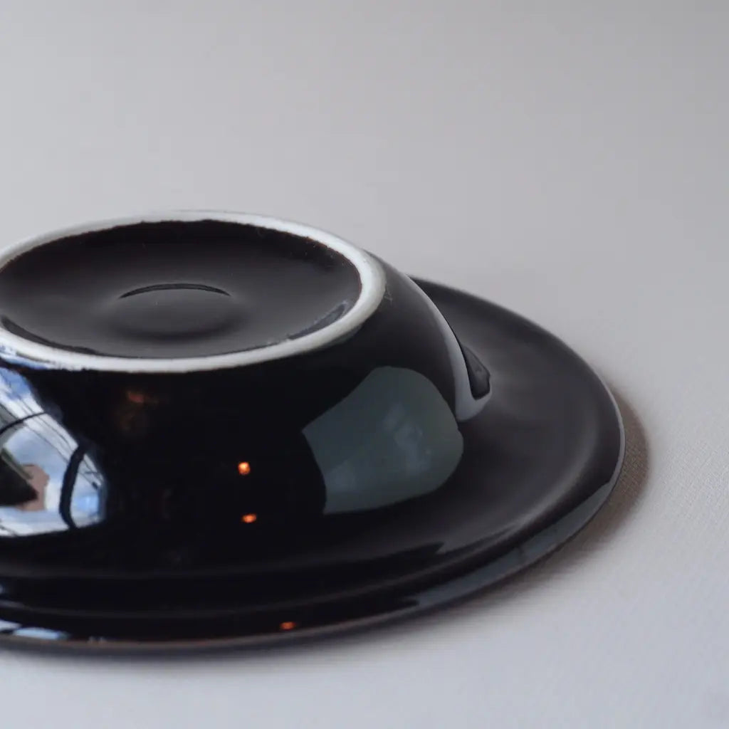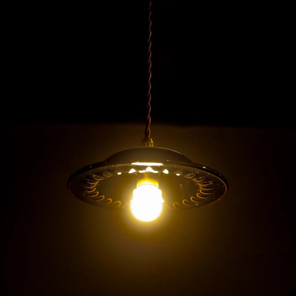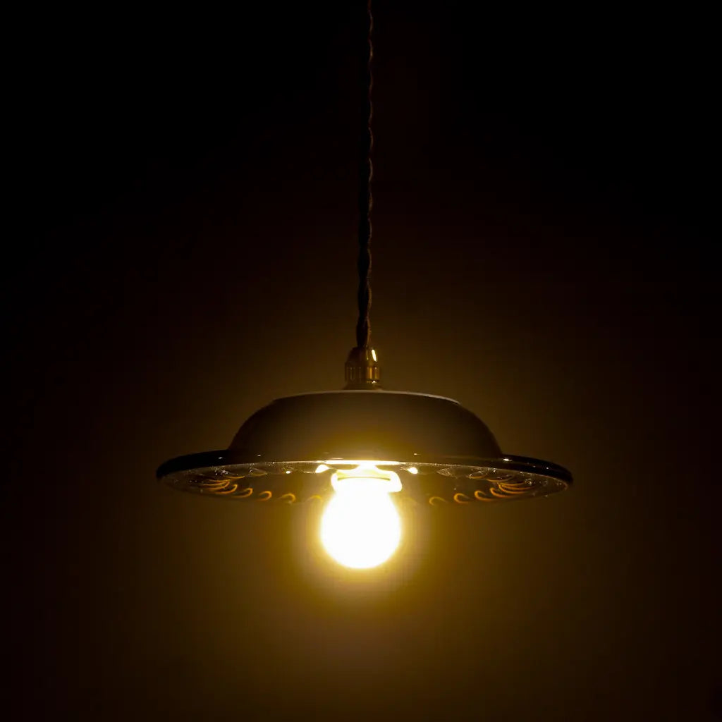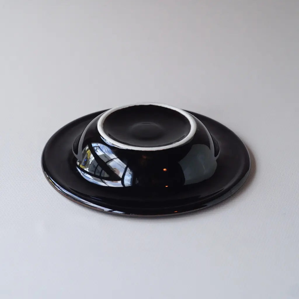 黒釉で艶やかに仕上げられた灰皿をリメイクしたペンダントライト。黒一色だからこそ際立つ、リブ形状(凹凸)。シンプルな造形は、光を受けたときに陰影を生み出し、表情を作ります。黒色は日本的な静謐さとモダンさを両立。和室にも洋室にも寄り添う、研ぎ澄まされたデザインです。