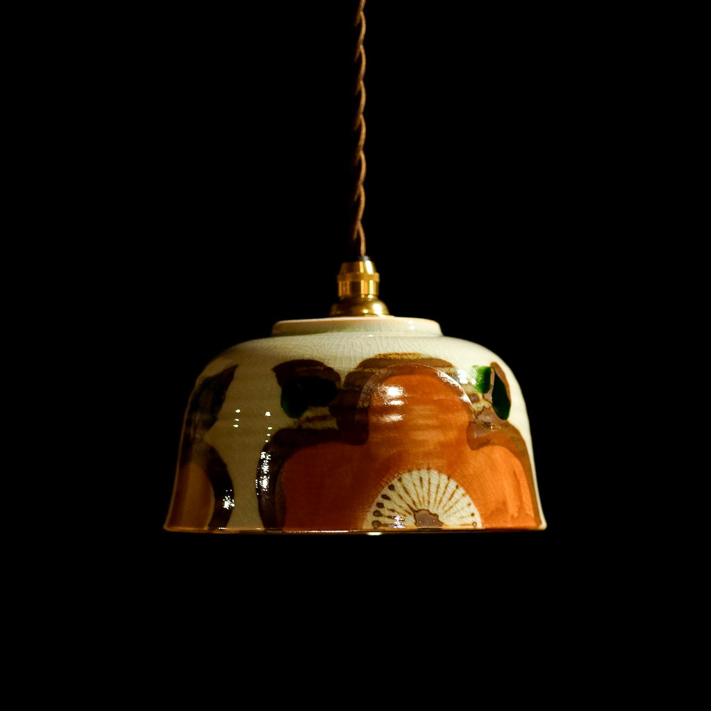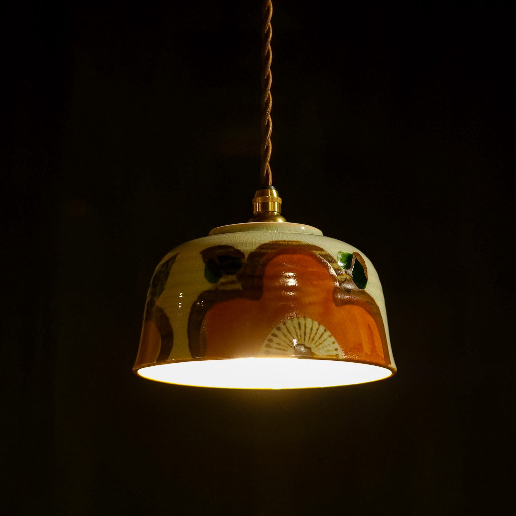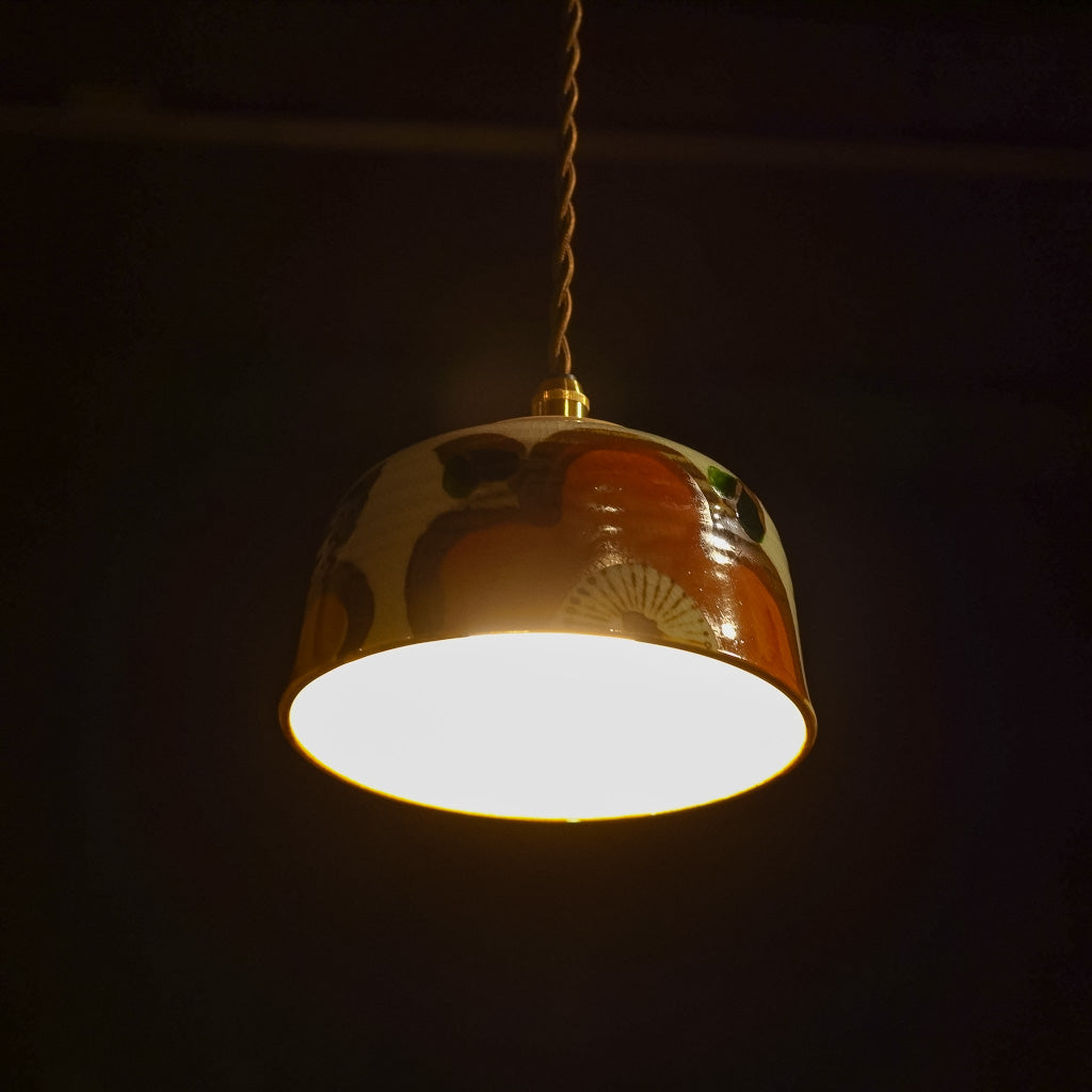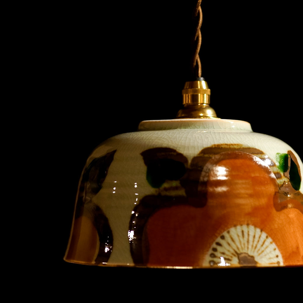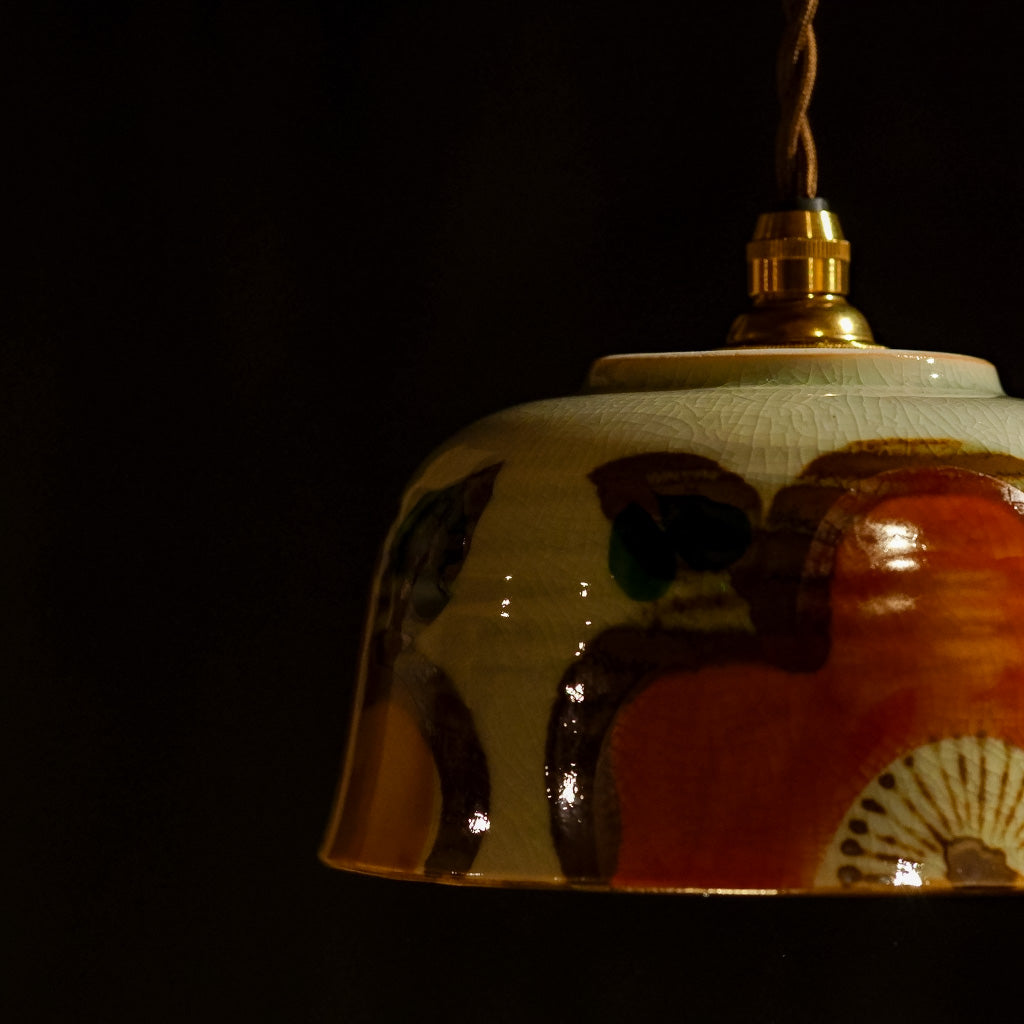 手描きの大きな花があしらわれた、どんぶり器をリメイクしたペンダントライト。