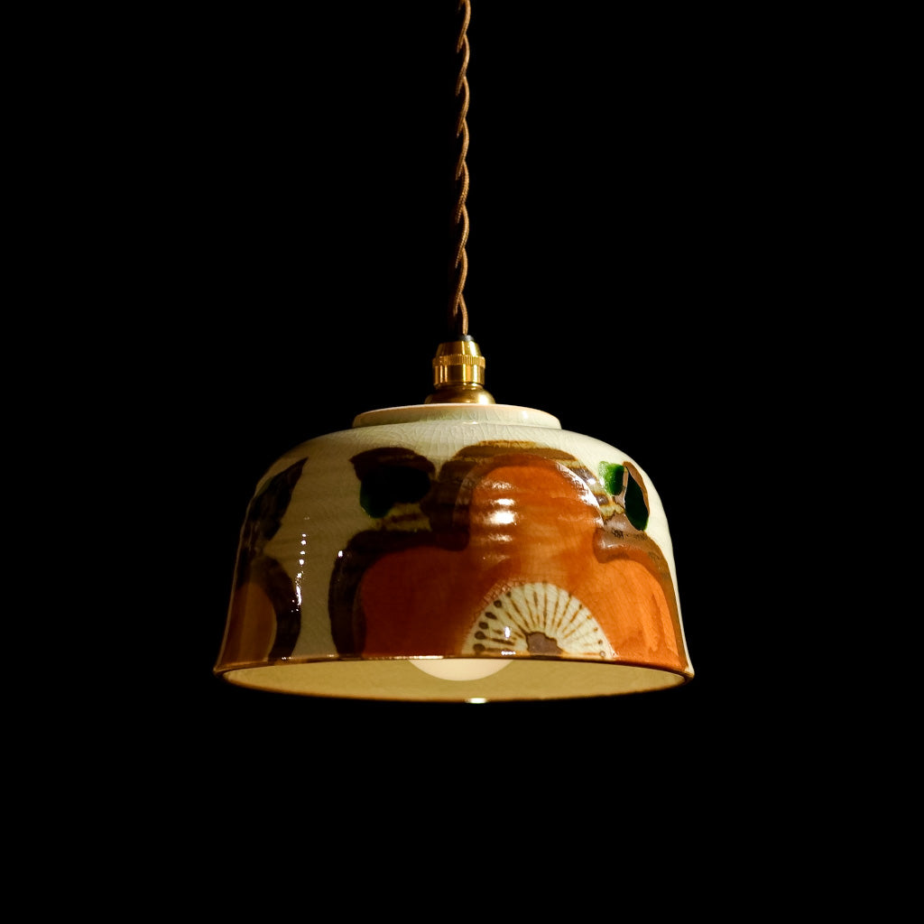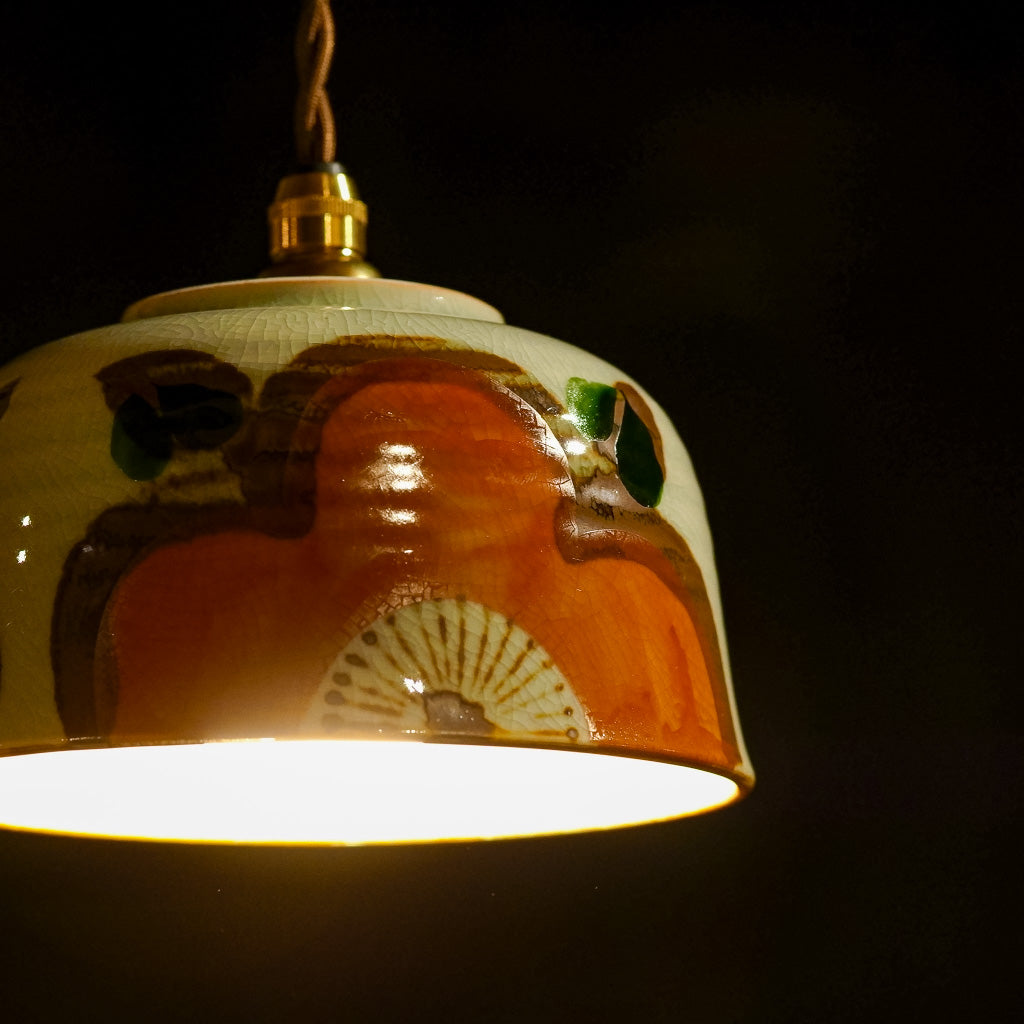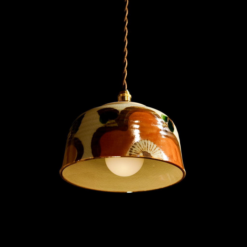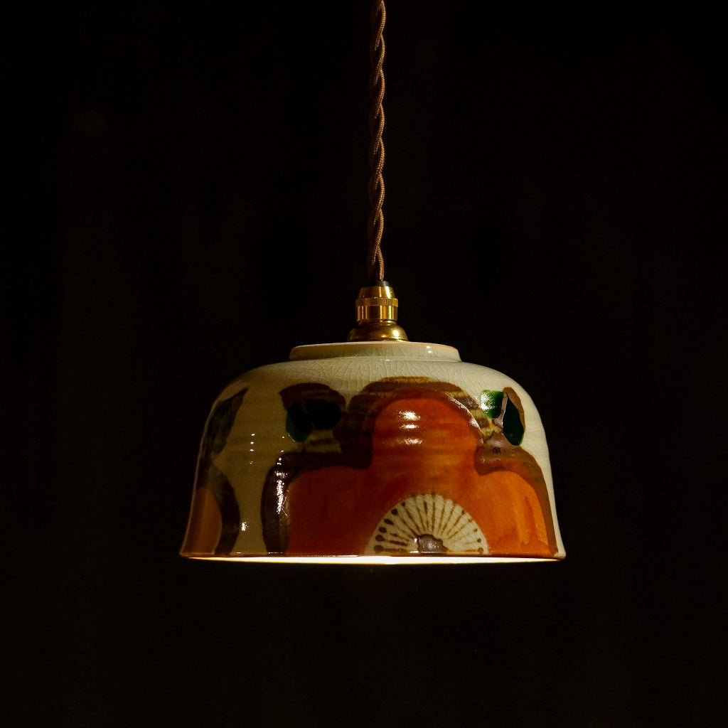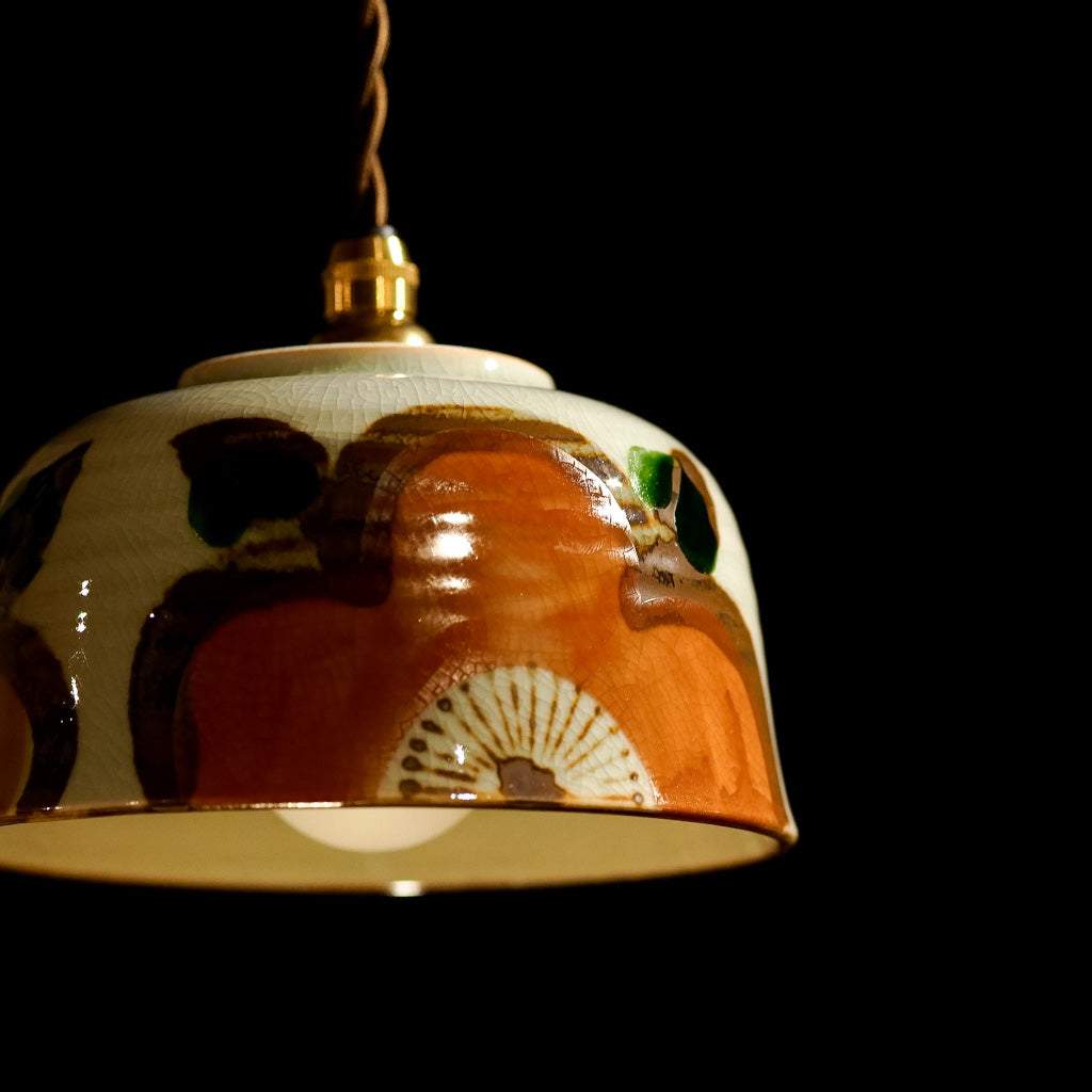 手描きの大きな花があしらわれた、どんぶり器をリメイクしたペンダントライト。