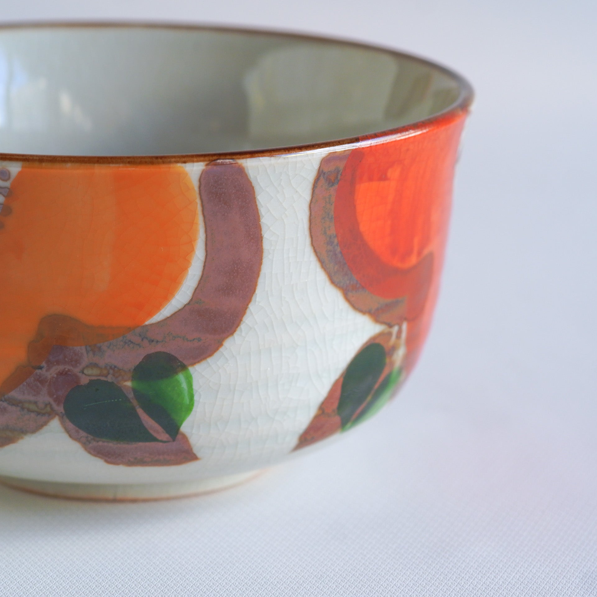 あたたかな橙色と深い緑が印象的で、素朴な味わいがあります。