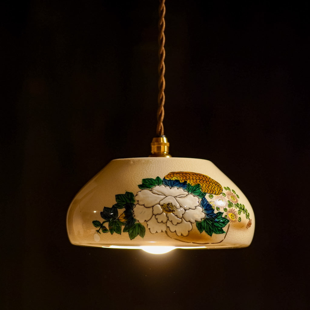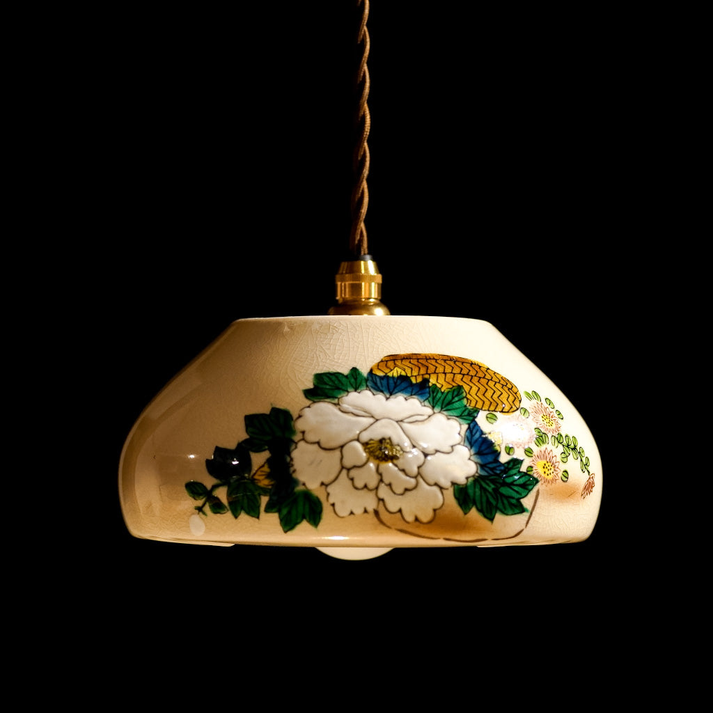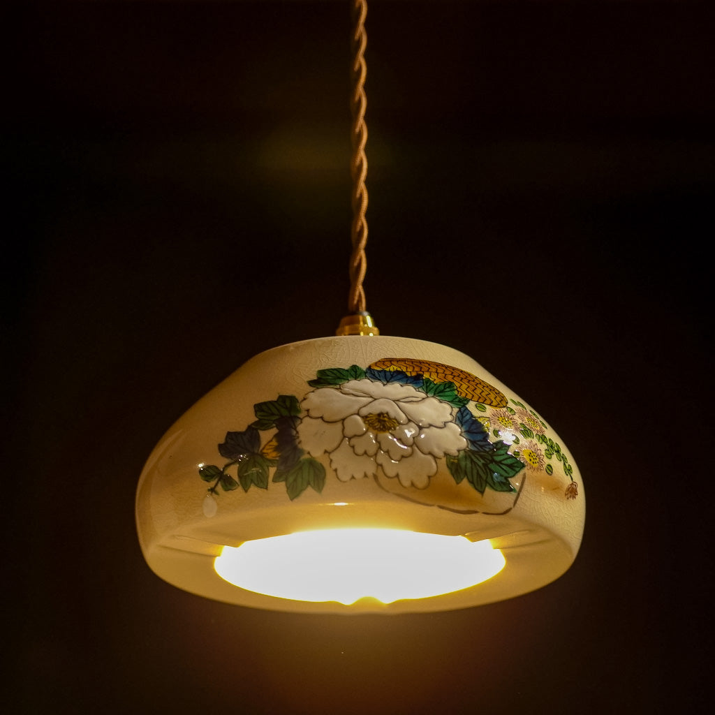 作地未詳|九谷焼|菊|貫入|ペンダントライト