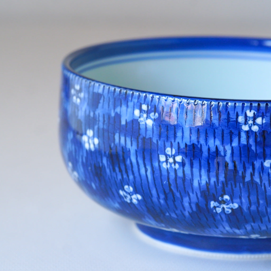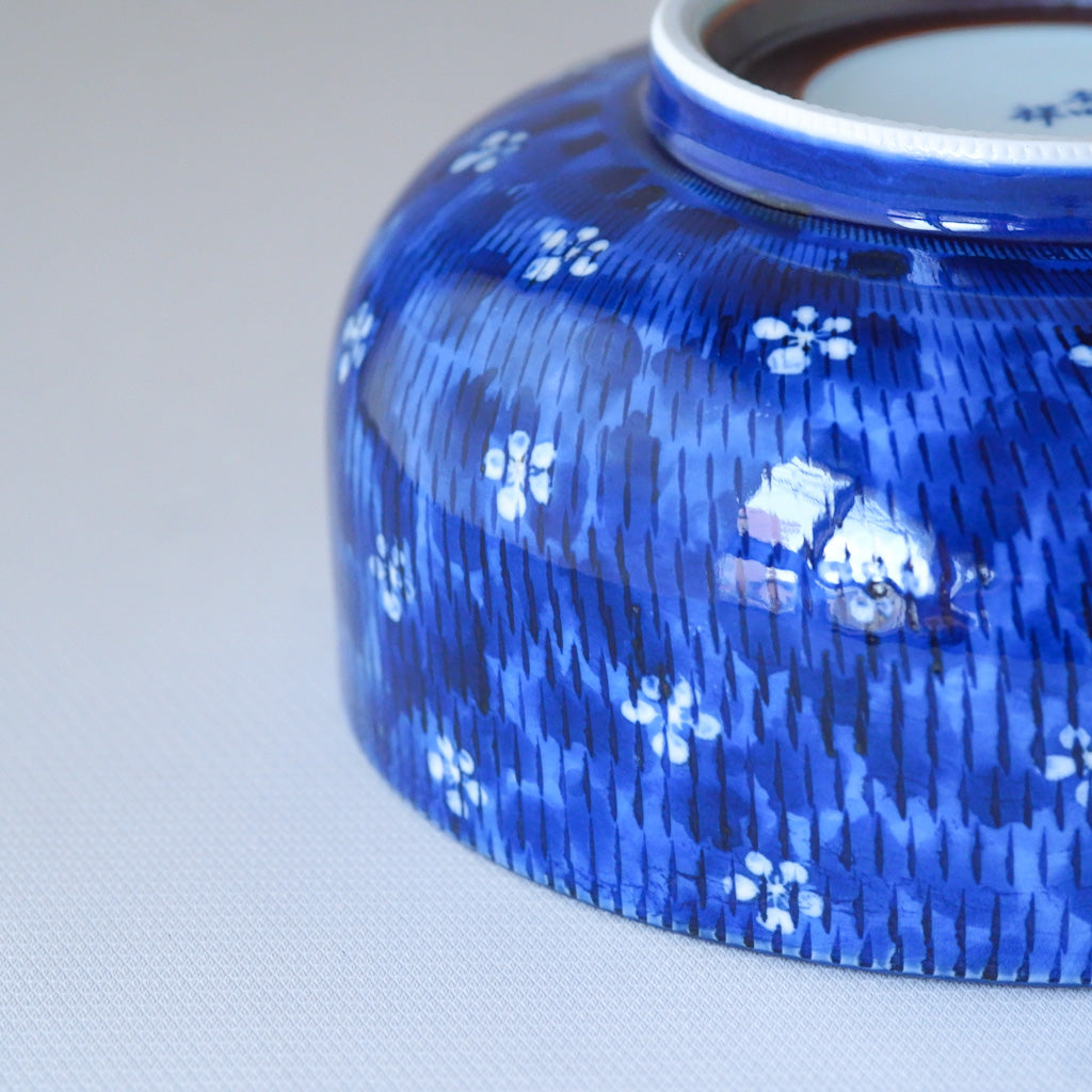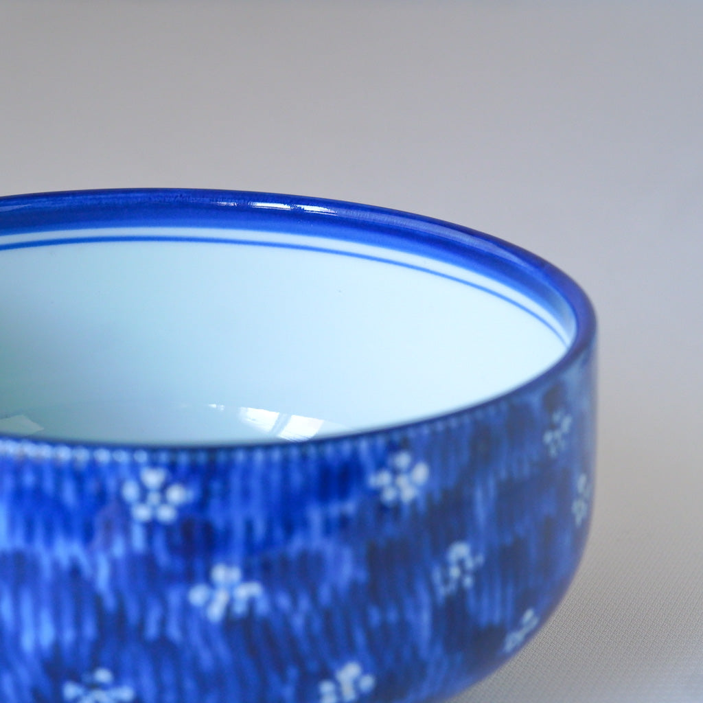 深い藍の上に、手描きの白い小花がそっと浮かび上がる——。
