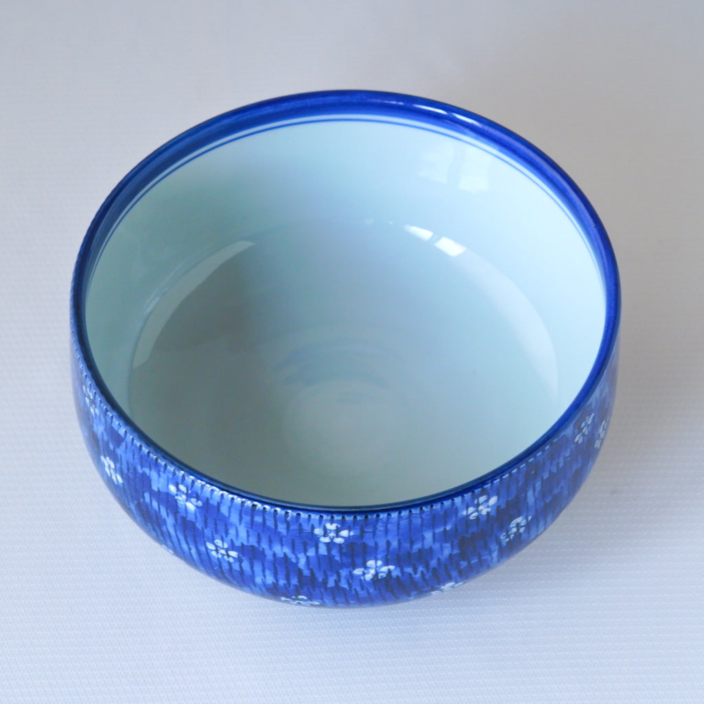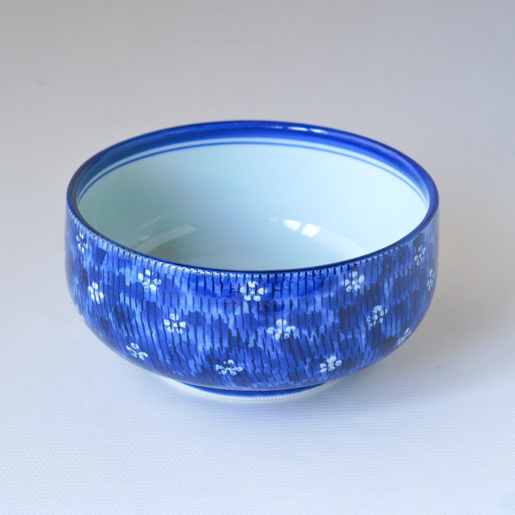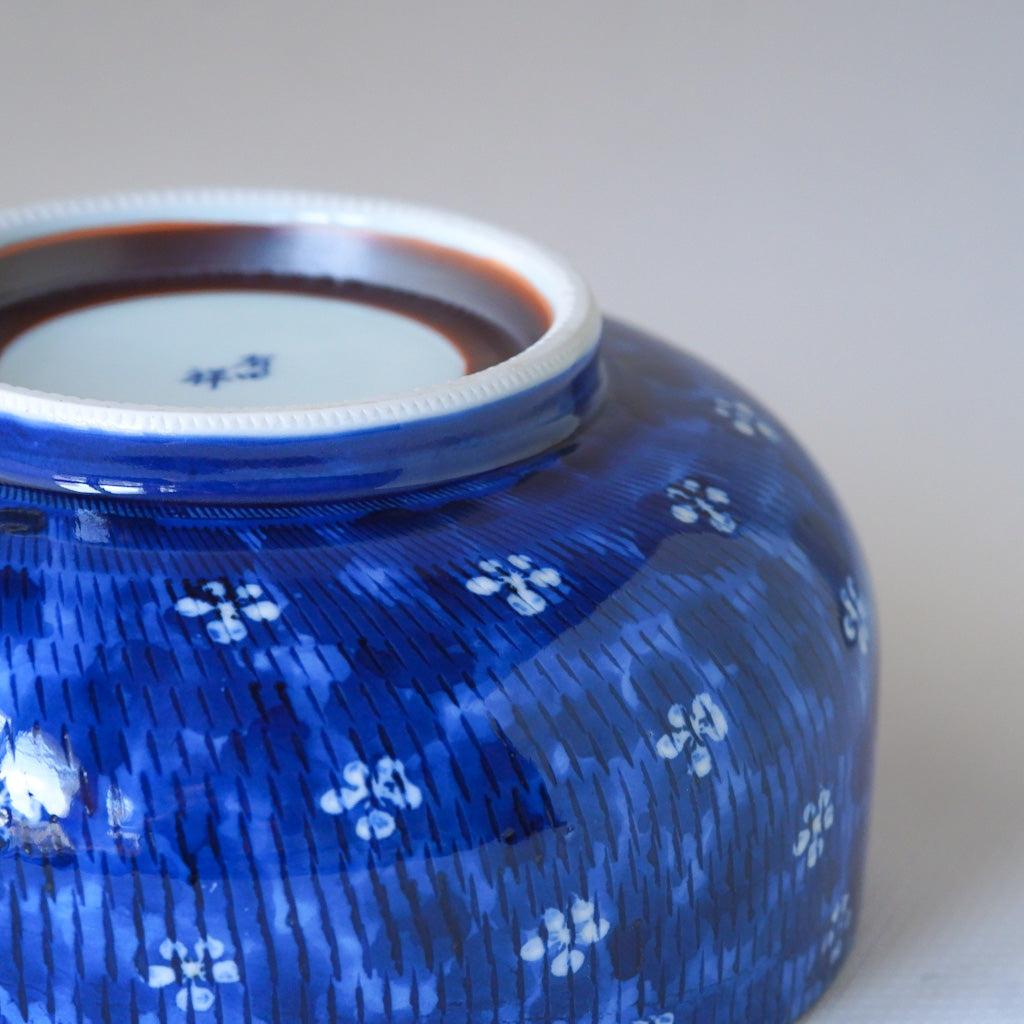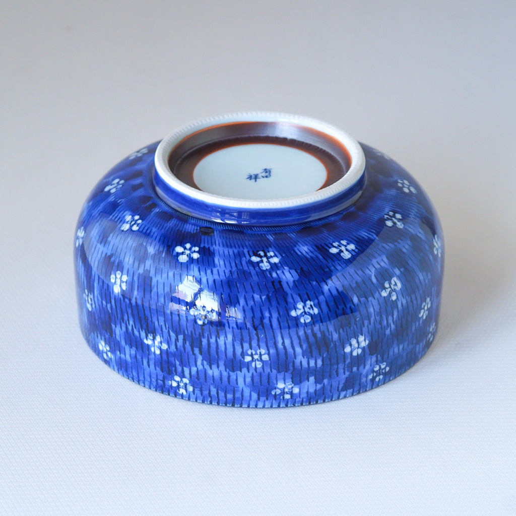 深い藍の上に、手描きの白い小花がそっと浮かび上がる——。