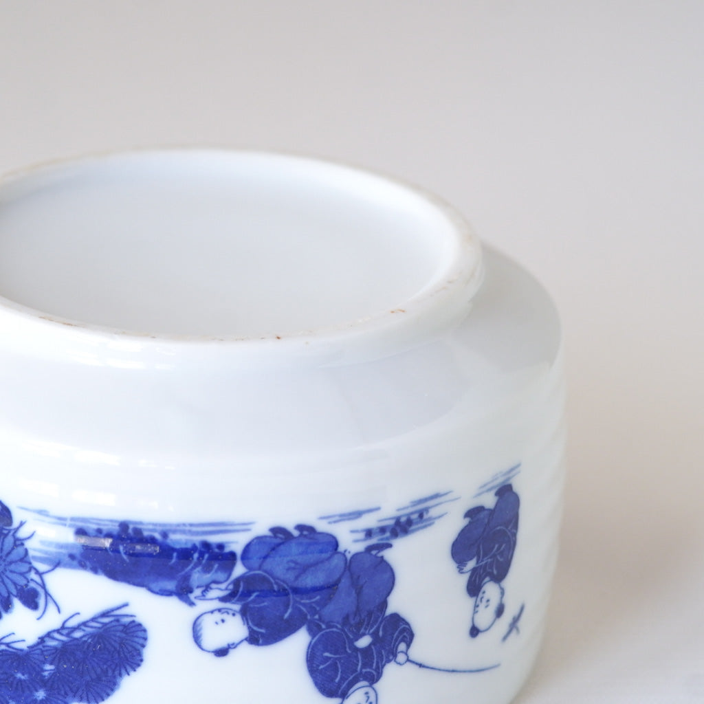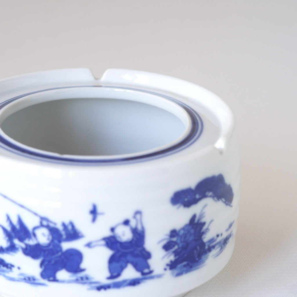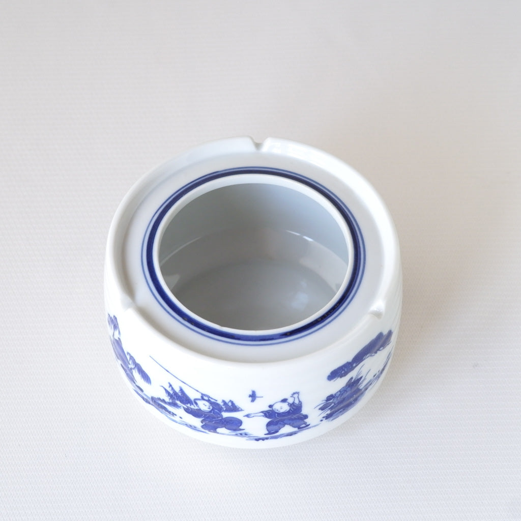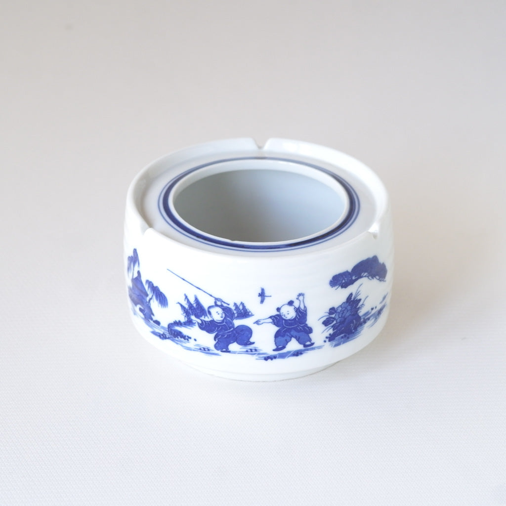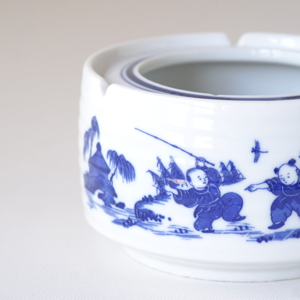 愛らしい唐子文様が描かれた白磁の灰皿を、ペンダントライトへとリメイク。