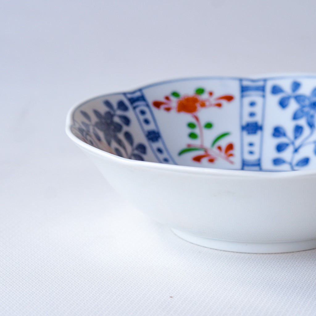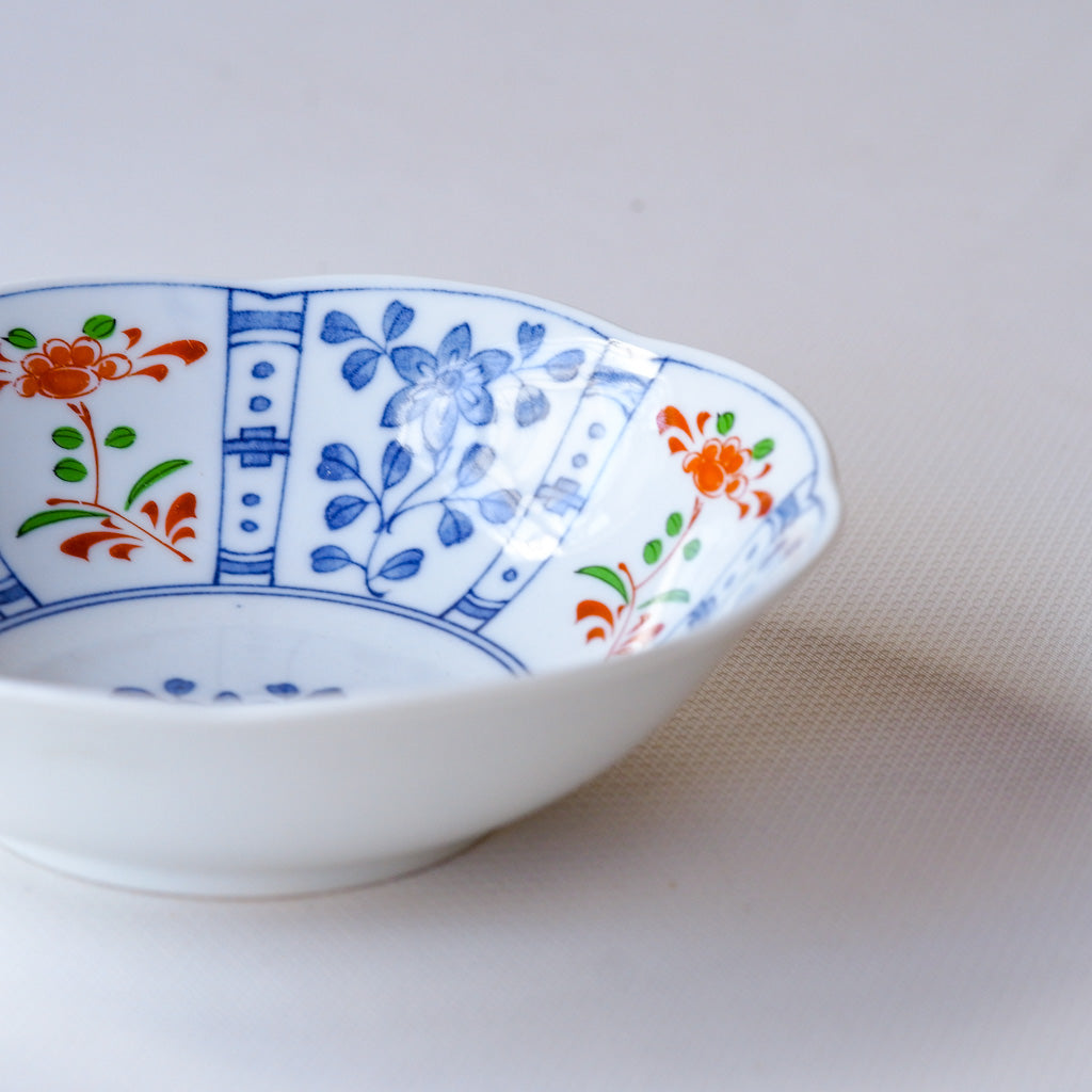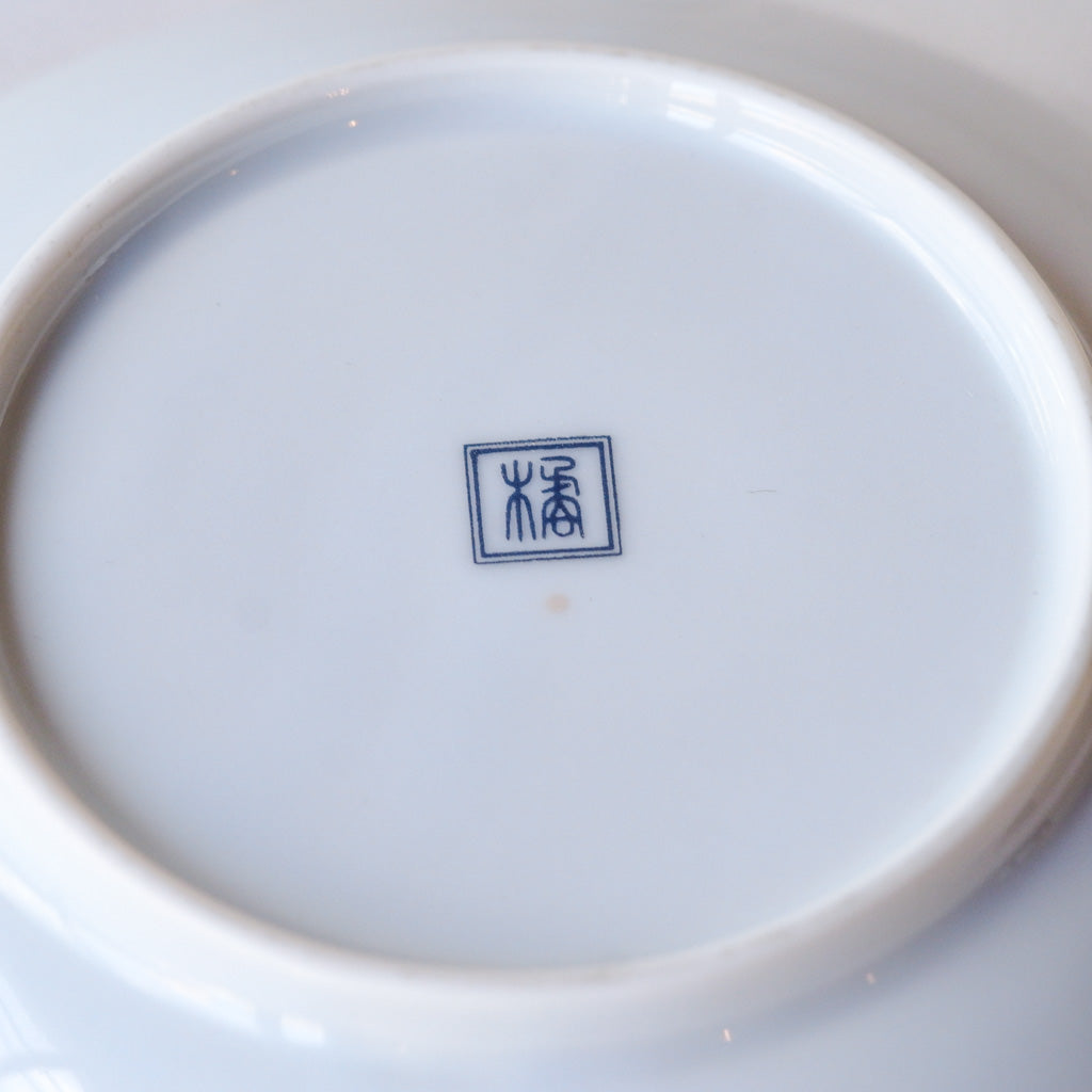 外側は白磁の静かな佇まいを保ち、内側にのみ赤絵と草模様が施された器です。